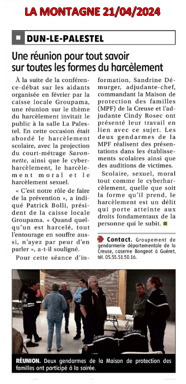 Réunion sur le harcèlement en Creuse